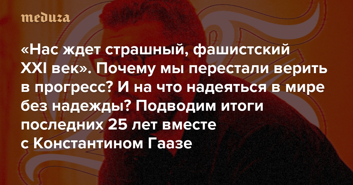 «Нас ждет страшный, фашистский XXI век» Почему мы перестали верить в прогресс? И на что надеяться в мире без надежды? Подводим итоги последних 25 лет вместе с Константином Гаазе