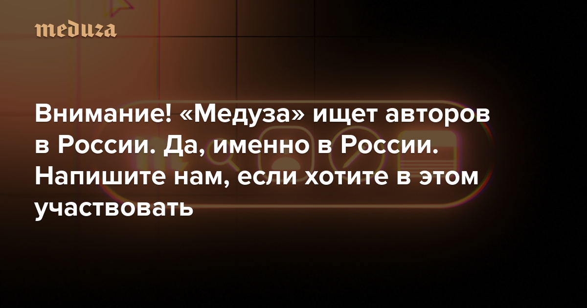 Внимание! «Медуза» ищет авторов в России. Да, именно в России Напишите нам, если вы готовы к этой трудной, но важной работе