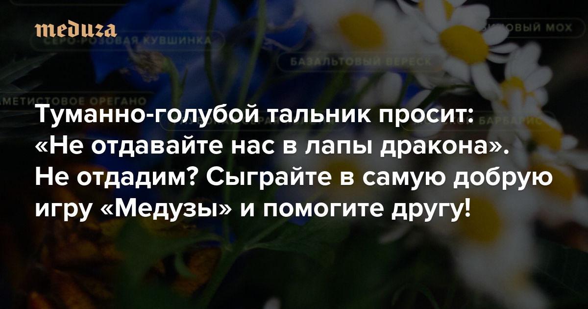 Туманно-голубой тальник просит: «Не отдавайте нас в лапы дракона». Не отдадим же? Сыграйте в самую добрую игру «Медузы» и помогите другу