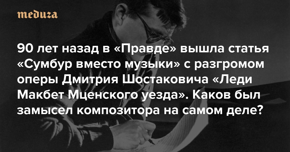 28 января 1936 года главная советская газета, «Правда», вышла с редакционной статьей «Сумбур вместо музыки». Разгромная рецензия на оперу Дмитрия Шостаковича «Леди Макбет Мценского уезда» — едва ли не самый знаменитый текст времен борьбы с «формализмом»: так в сталинском СССР называли искусство, которое не вписывалась в официальные рамки социалистического реализма. По просьбе «Медузы» музыкальный критик Степан Фурин рассказывает, в чем анонимный автор обвинял Шостаковича — и как сегодня, анализируя его статью, можно понять об этой опере кое-что важное.