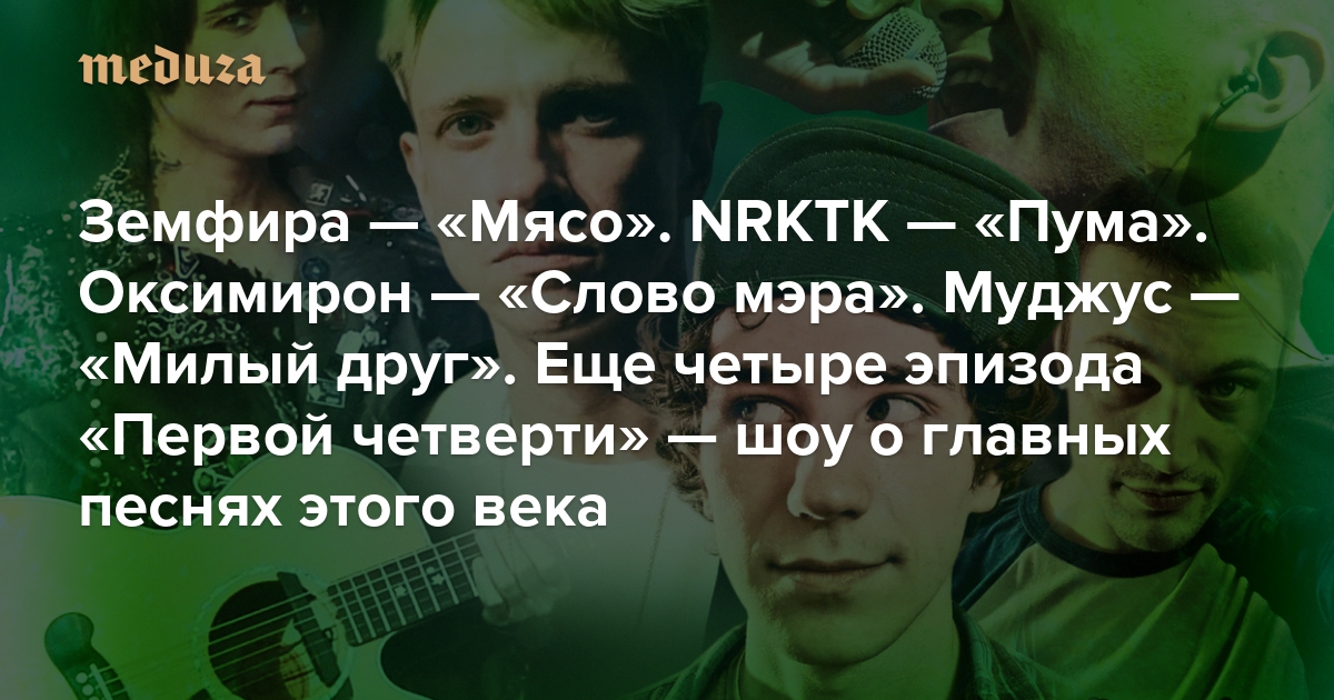 Земфира — «Мясо». NRKTK — «Пума». Оксимирон — «Слово мэра». Муджус — «Милый друг» Соскучились по новым эпизодам подкаста «Первая четверть» о главных песнях XXI века? Вот еще четыре!