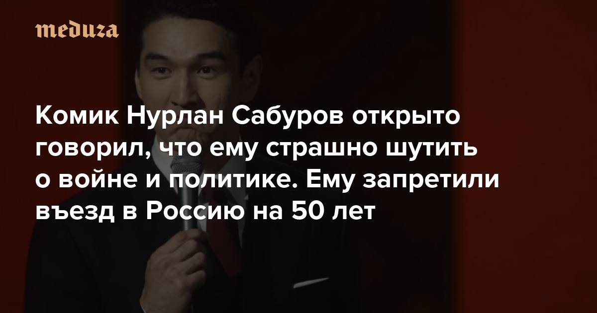 В ночь на 6 февраля в аэропорту Внуково задержали Нурлана Сабурова — резидента шоу «Что было дальше?» и одного из самых известных русскоязычных стендап‑комиков. Сабурову — гражданину Казахстана — вручили документ о запрете на въезд в Россию на 50 лет «в интересах нацбезопасности страны, соблюдения законодательства и защиты традиционных духовно-нравственных ценностей», сообщали госагентства. Весной 2025-го Сабурова уже задерживали в Шереметьево за нарушение миграционного законодательства. Зимой он столкнулся с отменой концертов в России. Поводом, вероятно, послужили его шутки о политике и религии. «Медуза» рассказывает, как Нурлан Сабуров пытался сохранить статус-кво, но в итоге не угодил ни сотрудникам ФСБ, ни сторонникам войны, ни ее противникам.