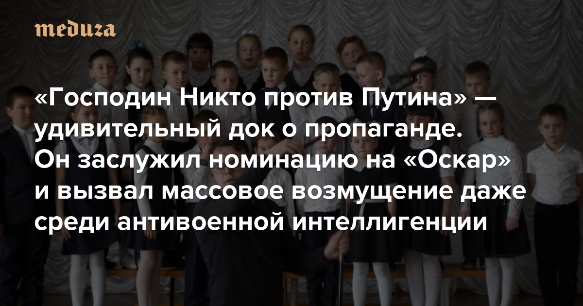 Один из номинантов на «Оскар» в категории «Лучший документальный полнометражный фильм» в этом году — документальная картина «Господин Никто против Путина», которую ее автор, педагог и режиссер из Карабаша Челябинской области Павел Таланкин, вывез из России в 2024 году. Смонтировать фильм ему помог американский документалист Дэвид Боренштейн. «Господин Никто против Путина» — это история о том, как российское государство беспощадно индоктринирует школьников. Таланкин рассказывает ее на примере школы, в которой работал сам. Впервые показанная на «Сандэнсе» в 2025 году картина восхитила одних — и так же сильно разозлила других. Кинокритик «Медузы» Антон Долин рассказывает, какие болезненные вопросы поднимает этот фильм — и почему, несмотря на противоречивые эмоции, которые он может вызвать, к нему все же стоит относиться как к важному документу о России военного времени.