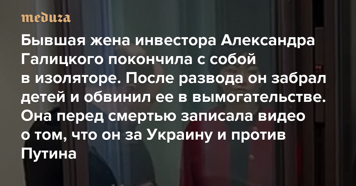Бывшая жена инвестора Александра Галицкого покончила с собой в изоляторе После развода он забрал детей и обвинил ее в вымогательстве. Она перед смертью записала видео о том, что он за Украину и против Путина