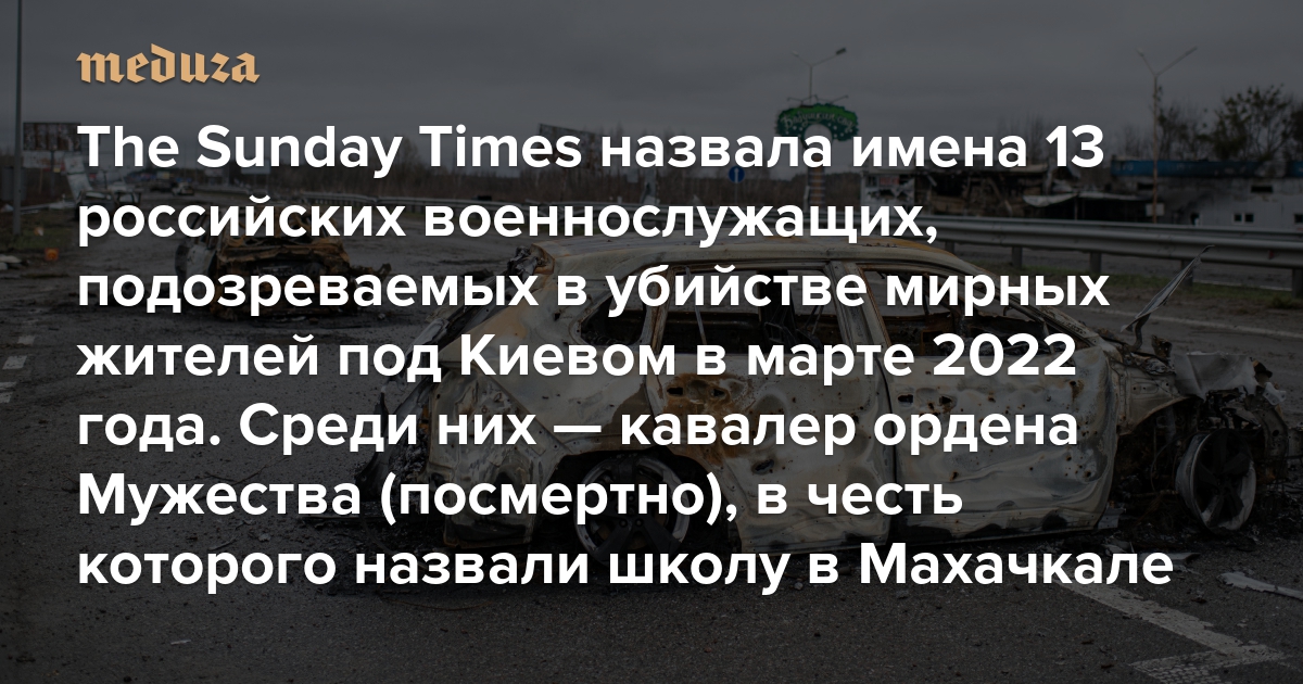 The Sunday Times назвала имена 13 российских военнослужащих, подозреваемых в убийстве мирных жителей под Киевом в марте 2022 года Среди них — кавалер ордена Мужества (посмертно), в честь которого назвали школу в Махачкале