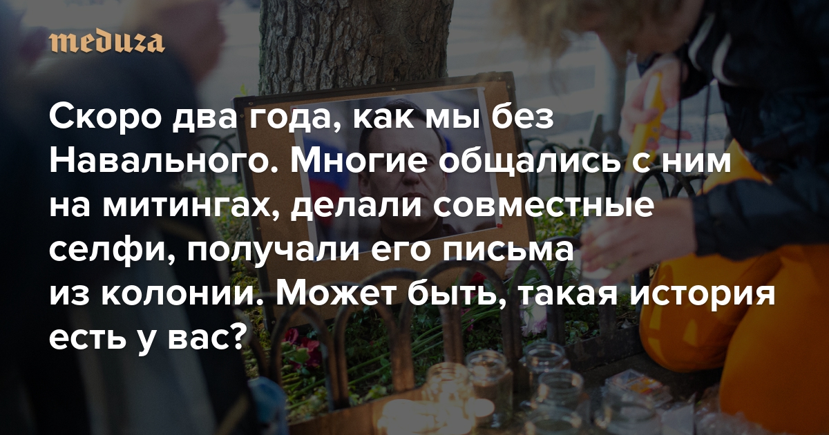 Скоро два года, как мы без Навального. Многие общались с ним на митингах, делали совместные селфи, получали его письма из колонии. Может быть, такая история есть у вас? Поделитесь ею с «Медузой»