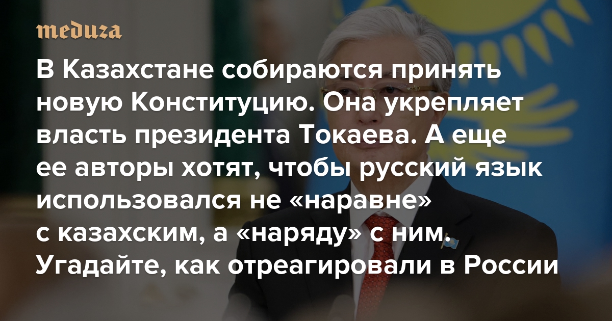 В Казахстане собираются принять новую Конституцию. Она укрепляет власть президента Токаева А еще ее авторы хотят, чтобы русский язык использовался не «наравне» с казахским, а «наряду» с ним. Угадайте, как отреагировали в России
