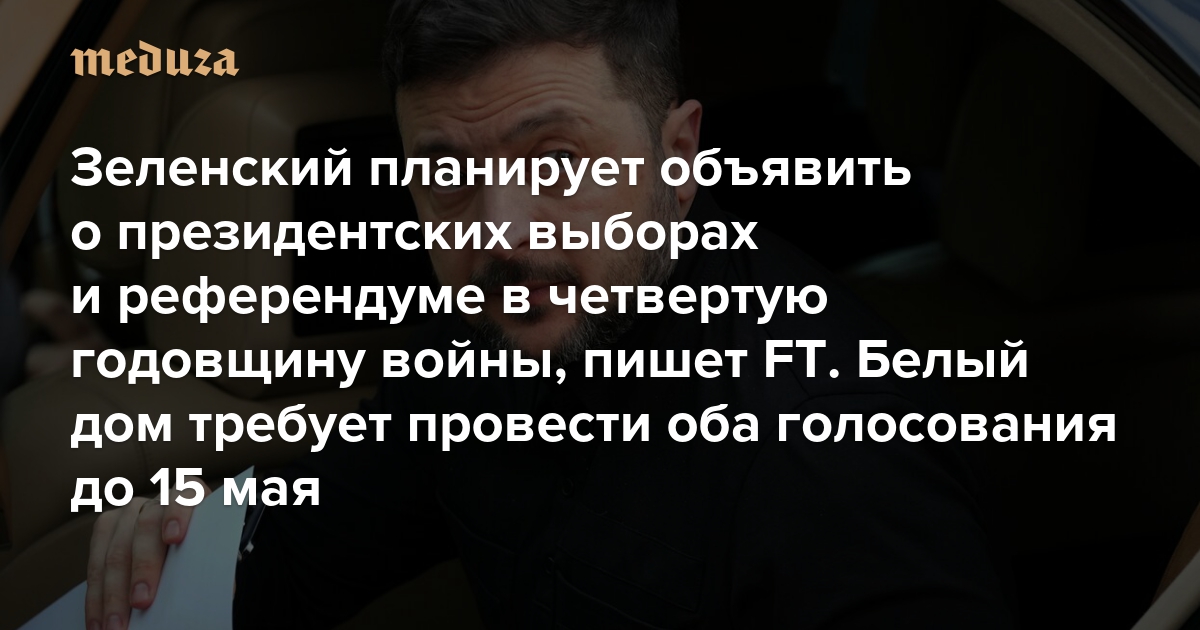 Зеленский планирует объявить о президентских выборах и референдуме в четвертую годовщину войны, пишет FT Белый дом требует провести оба голосования до 15 мая, угрожая лишить Киев гарантий безопасности
