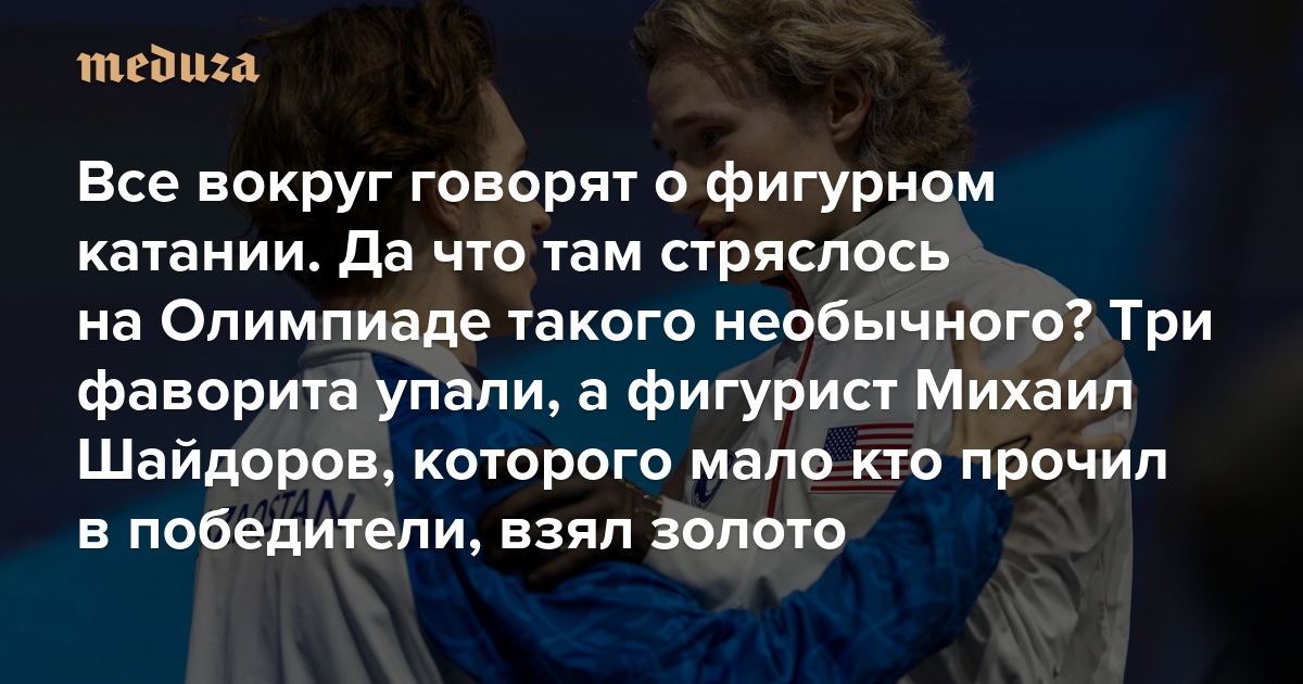 Все вокруг говорят о фигурном катании. Да что там стряслось на Олимпиаде такого необычного? Три фаворита упали, а фигурист Михаил Шайдоров, которого мало кто прочил в победители, взял золото. На самом деле так бывает