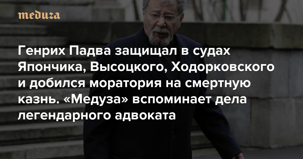72 года в профессии Генрих Падва защищал в судах Япончика, Высоцкого, Ходорковского и добился моратория на смертную казнь. «Медуза» вспоминает дела легендарного адвоката
