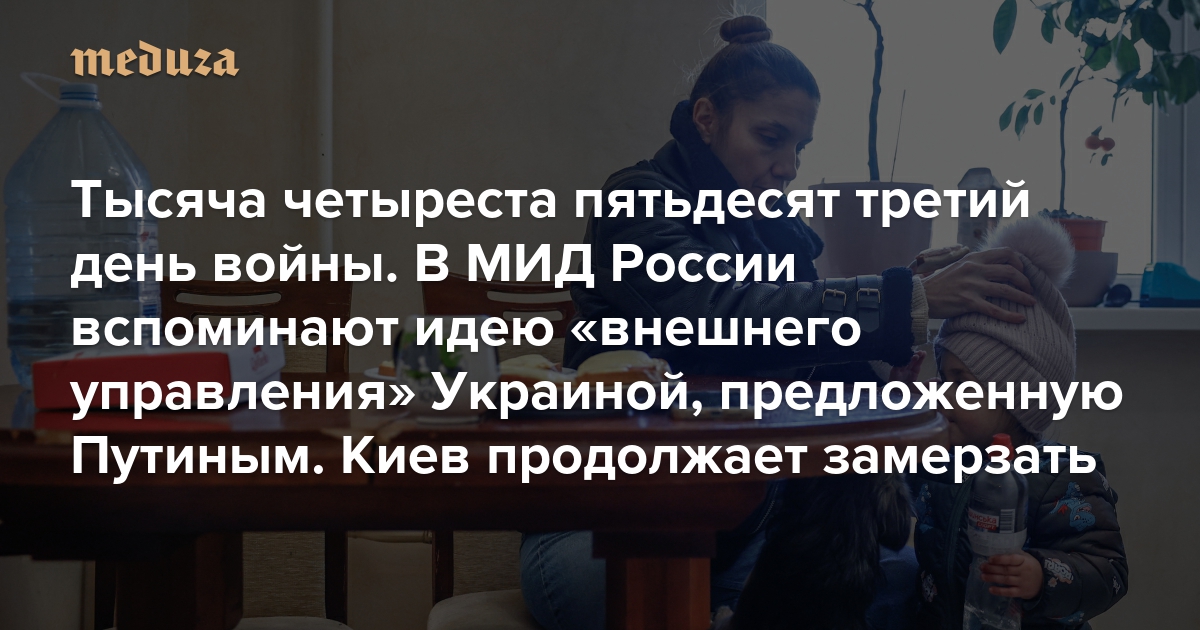 Война Тысяча четыреста пятьдесят третий день. В МИД России вспоминают идею «внешнего управления» Украиной, предложенную Путиным. Киев продолжает замерзать