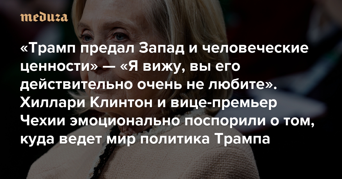 На Мюнхенской конференции по безопасности во время одной из панельных сессий бывшая госсекретарь США Хиллари Клинтон и вице-премьер правительства Чехии Петр Мацинка поспорили о роли администрации Дональда Трампа в контексте войны России и Украины. Клинтон обвинила Трампа в «предательстве» ценностей Запада, а Мацинка заявил, что политика Трампа стала лишь ответом на леволиберальную повестку, «зашедшую слишком далеко». Их пятиминутный эмоциональный диалог перепечатали многие мировые СМИ — он оказался очень показательным в контексте поляризации общественного мнения на Западе из-за фигуры Трампа, его подхода к российско-украинской войне и споров о будущем мироустройстве. Вот приблизительный пересказ этой дискуссии.