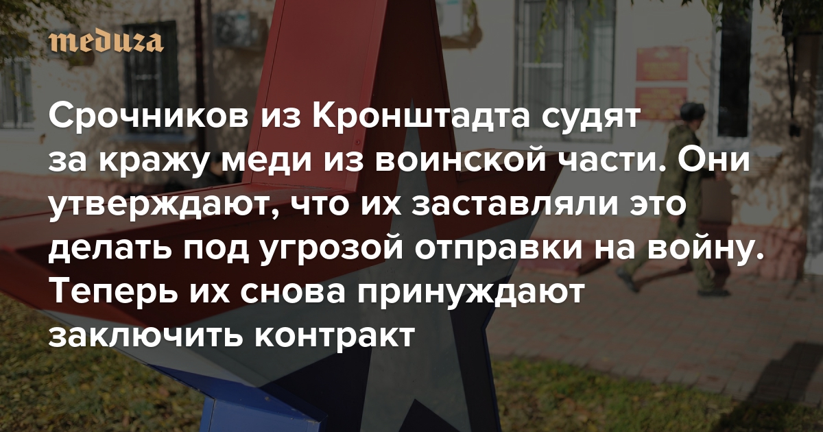 Срочников из Кронштадта судят за кражу меди из воинской части. Они утверждают, что их заставляли это делать под угрозой отправки на войну. Теперь их снова принуждают заключить контракт Главное из публикации «Бумаги»