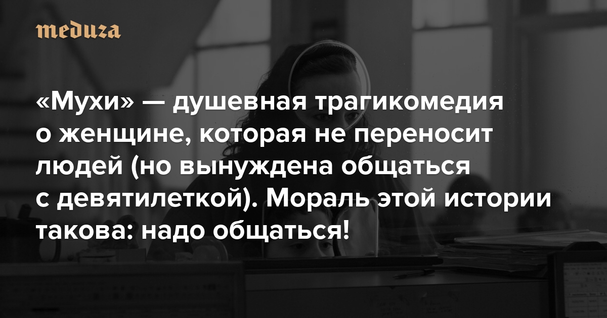 «Мухи» — душевная трагикомедия о женщине, которая не переносит людей (но вынуждена общаться с девятилеткой) Мораль этой истории такова: надо общаться!