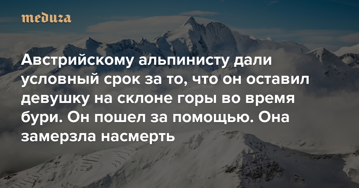 Австрийскому альпинисту дали условный срок за то, что он оставил девушку на склоне горы во время бури Он пошел за помощью. Она замерзла насмерть