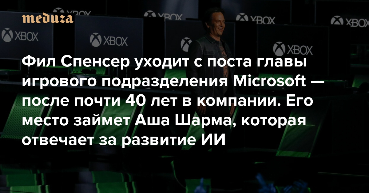 В пятницу, 20 февраля, издание IGN со ссылкой на источники сообщило, что глава Microsoft Gaming Фил Спенсер уходит в отставку. Новым руководителем игрового подразделения с понедельника станет Аша Шарма, до этого момента бывшая директором по продукту в Microsoft CoreAI. Этот отдел занимается развитием искусственного интеллекта. Кроме того, из Microsoft уйдет Сара Бонд — президент производителя видеоигровых консолей Xbox. Мэтт Бути, глава компании — издателя игр Xbox Game Studios, входящей в Microsoft Gaming, получил повышение и стал главой Xbox по контенту.