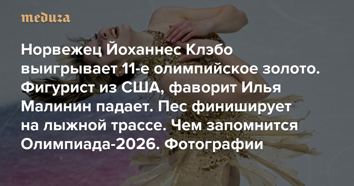 Норвежец Йоханнес Клэбо выигрывает 11-е (!) олимпийское золото. Фигурист из США Илья Малинин падает — и побеждает казахстанец Михаил Шайдоров. Чехословацкий влчак Назгул финиширует на лыжной трассе Вот чем запомнится Олимпиада-2026. Фотографии