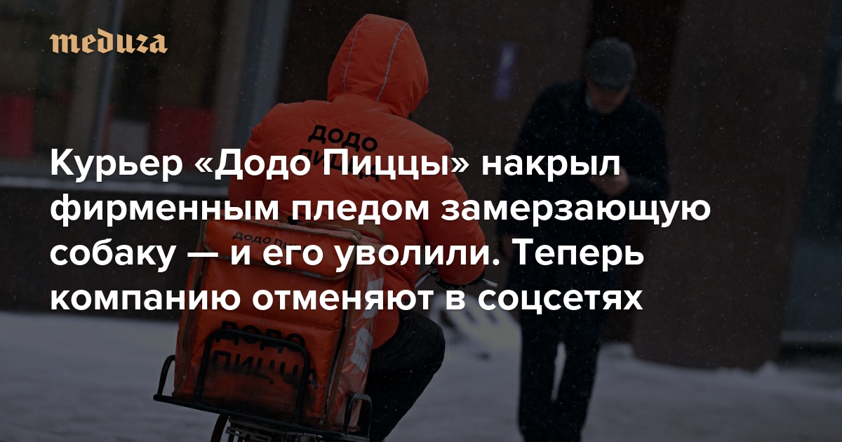 Курьер «Додо Пиццы» накрыл фирменным пледом замерзающую собаку — и его уволили. Теперь компанию отменяют в соцсетях «Кто укроет собаку — окажется на улице вместе с ней»