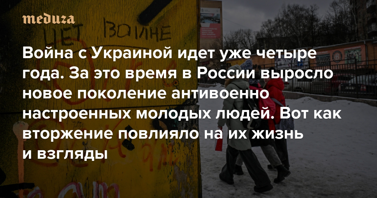 Война с Украиной идет уже четыре года. За это время в России выросло новое поколение антивоенно настроенных молодых людей. Вот четыре истории — о том, как вторжение повлияло на их представления о себе, родине и мире.