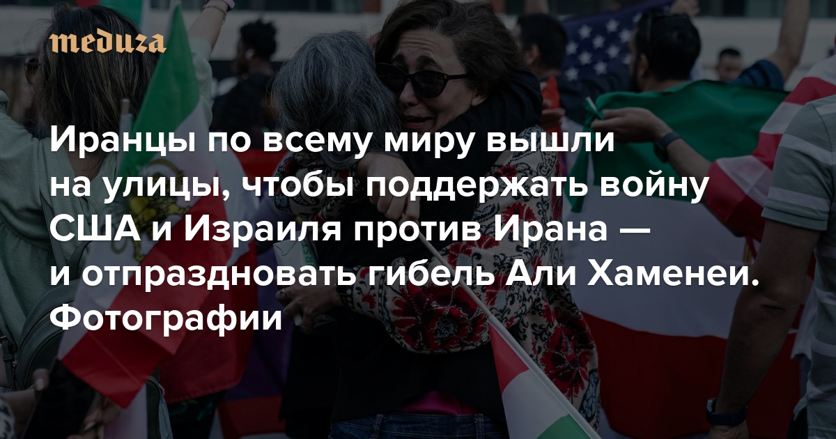 Большая война на Ближнем Востоке идет второй день. США и Израиль продолжают наносить удары по Ирану, а Исламская республика атакует государства Персидского залива, где расположены американские военные базы. В ночь на 1 марта иранские власти признали, что аятолла Хаменеи погиб, хотя до этого называли сообщения СМИ о его гибели «психологической войной». На протяжении десятилетий из Ирана в другие страны бежали миллионы людей — для многих из них американо-израильская операция против правящей власти в Исламской республике и гибель Али Хаменеи стали поводом для праздника. В разных частях света, от США до Японии, иранские беженцы и эмигранты вышли на уличные акции. «Медуза» показывает, как они проходят.
