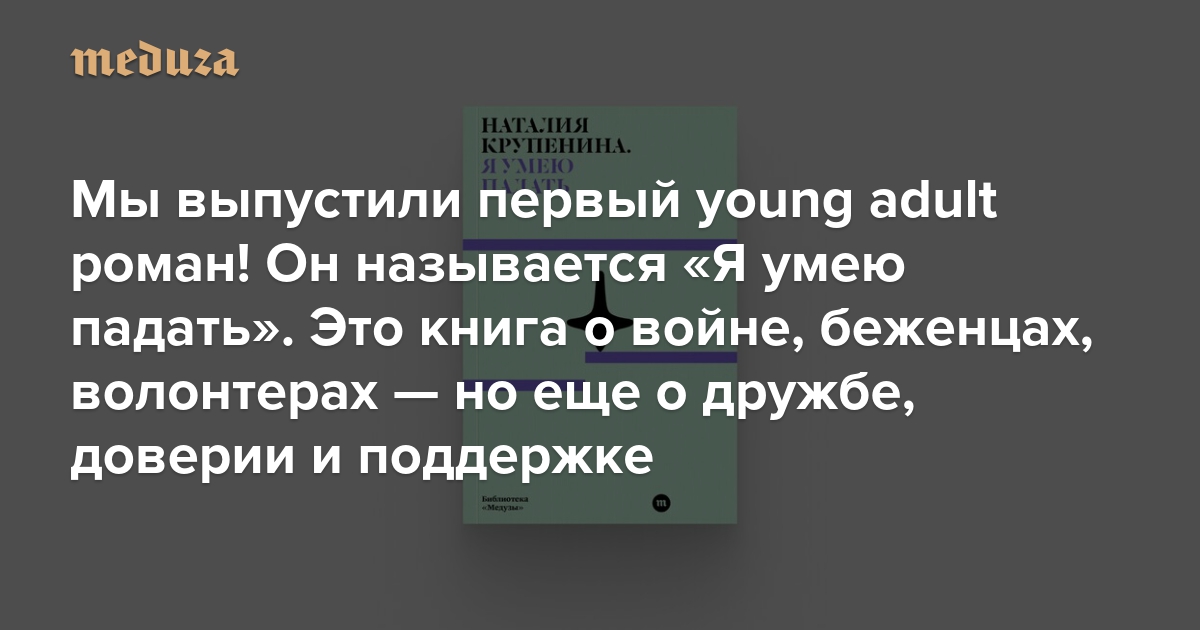 Издательство «Медузы» продолжает собственную линейку художественной литературы книгой «Я умею падать». Это роман с элементами фантастики в жанре young adult. Его герои — старшеклассники, которые живут в альтернативном мире, во многом очень похожем на наш. Настолько похожем, что там, так же как у нас, в феврале 2022-го соседняя страна (очень похожая на Россию) вторгается в Украину и начинается война. Это третья книга писательницы, редактора и аналитика Наталии Крупениной; еще она написала фантастическую повесть для подростков «Сломанное время» и детский нон-фикшен «Как приготовить пирог из цифр».