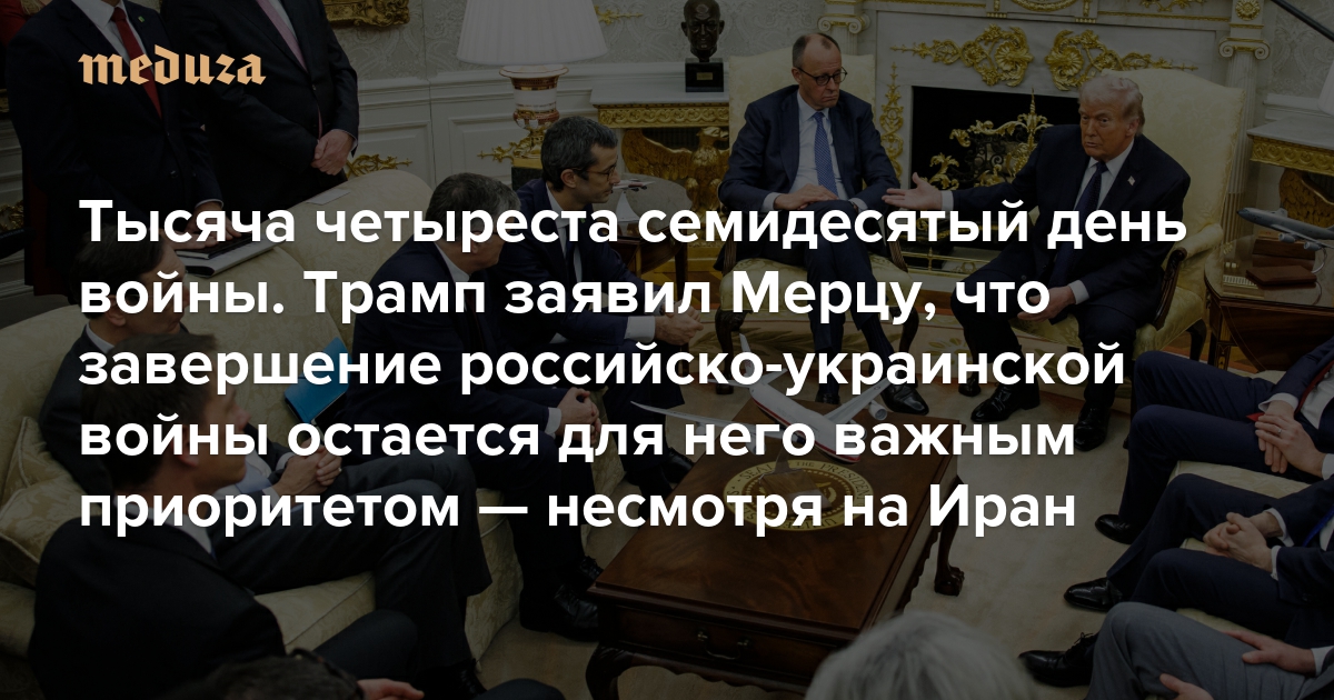 Война Тысяча четыреста семидесятый день. Трамп заявил Мерцу, что завершение российско-украинской войны остается для него важным приоритетом — несмотря на Иран