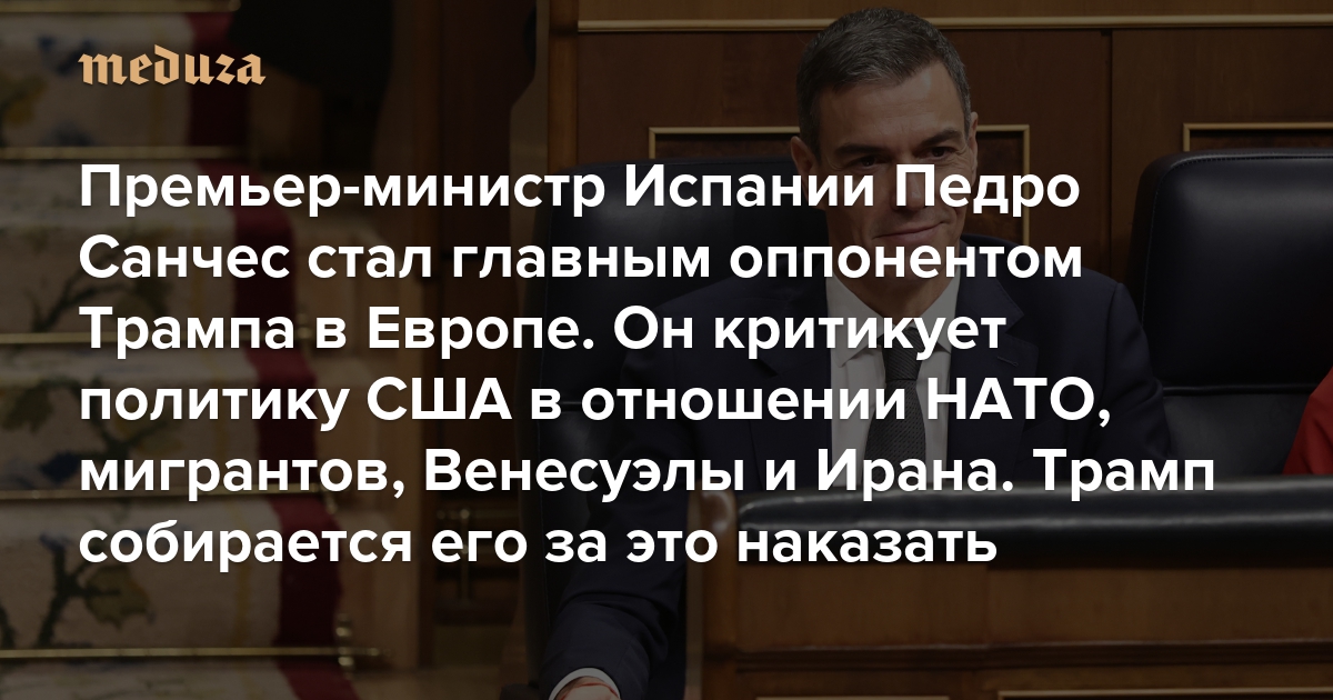 Премьер-министр Испании Педро Санчес стал главным оппонентом Трампа в Европе Он критикует политику США в отношении НАТО, мигрантов, Венесуэлы и Ирана. Трамп собирается его за это наказать