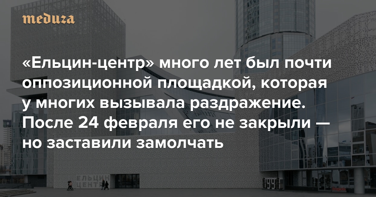 С самого открытия «Ельцин-центр», в 2025 году отметивший 10-летний юбилей, был уникальной для России площадкой. Он существовал на пожертвования лояльных власти предпринимателей и получал значительное госфинансирование, при этом его почти можно было назвать оппозиционным. За либеральность «Ельцин-центр» ругали патриоты и консерваторы, но помешать его работе не могли: благодаря самой истории своего появления у центра были влиятельные покровители в администрации президента. Казалось, так будет всегда, — но 24 февраля 2022 года Россия вторглась в Украину, и оставаться либеральной площадкой в условиях военного времени стало почти невозможно. Издание «Берег» рассказывает, как «Ельцин-центр» постепенно терял свой голос, пока не замолчал совсем. «Медуза» публикует этот текст целиком.