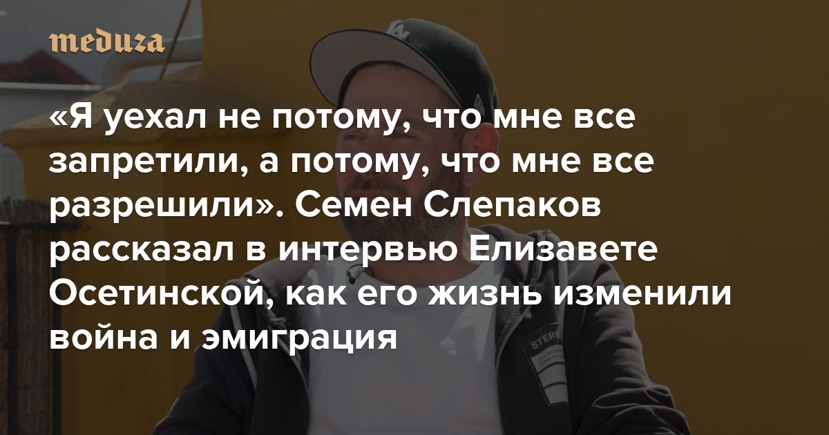 «Я уехал не потому, что мне все запретили, а потому, что мне все разрешили» Семен Слепаков рассказал в интервью Елизавете Осетинской, как его жизнь изменили война и эмиграция