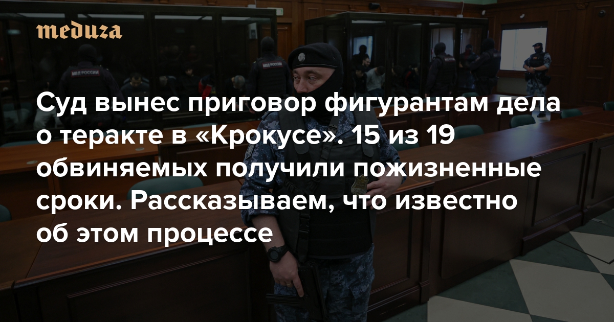 Суд вынес приговор фигурантам дела о теракте в «Крокусе». 15 из 19 обвиняемых получили пожизненные сроки Это важнейший судебный процесс, но известно о нем немногое