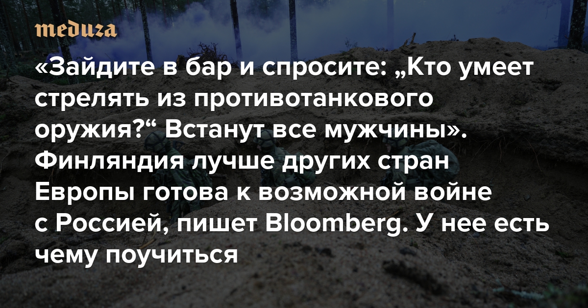«Зайдите в бар и спросите: „Кто умеет стрелять из противотанкового оружия?“ Встанут все мужчины» Финляндия лучше других стран Европы готова к возможной войне с Россией, пишет Bloomberg. У нее есть чему поучиться