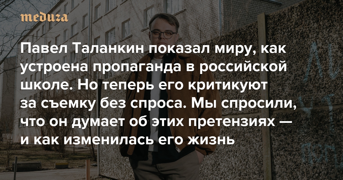 Павел Таланкин показал миру, как устроена пропаганда в российской школе. Но теперь его критикуют за съемку без спроса Мы спросили, что он думает об этих претензиях — и как изменилась его жизнь