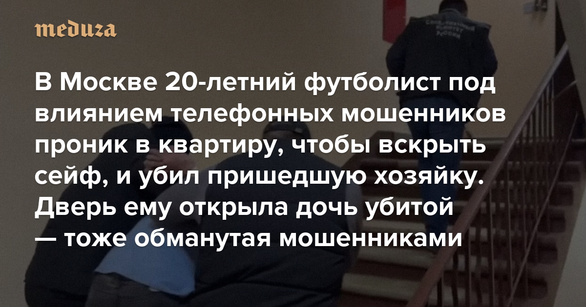 В Москве 20-летний футболист под влиянием телефонных мошенников проник в квартиру, чтобы вскрыть сейф, и убил пришедшую хозяйку Дверь ему открыла дочь убитой — тоже обманутая мошенниками