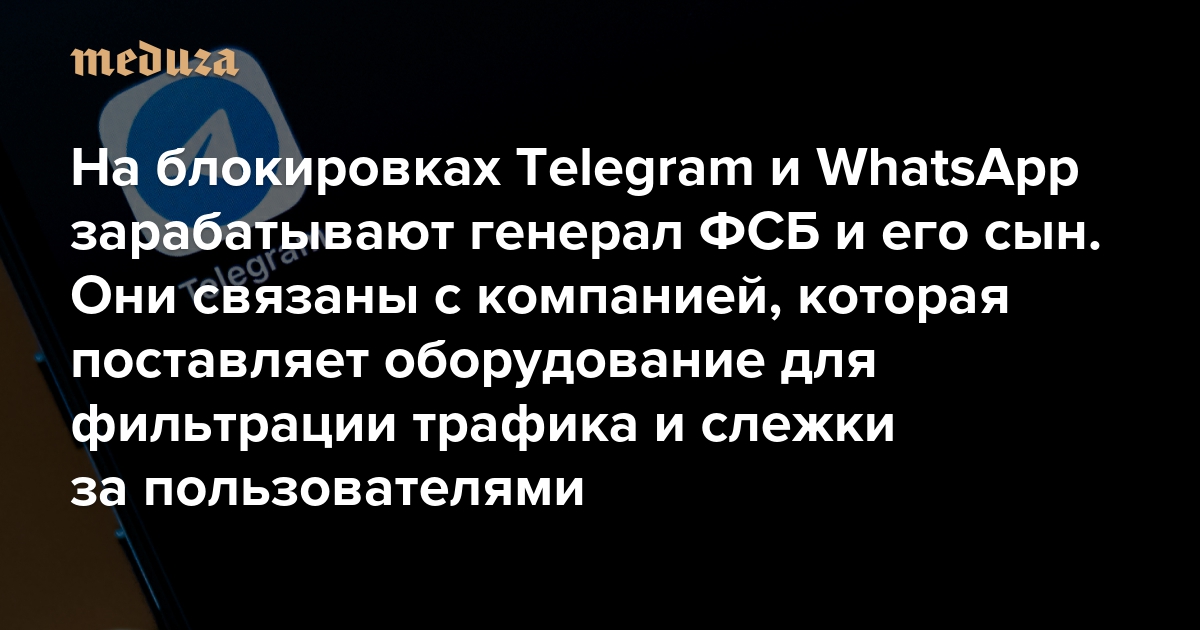 На блокировках Telegram и WhatsApp зарабатывают генерал ФСБ и его сын Они связаны с компанией, которая поставляет оборудование для фильтрации трафика и слежки за пользователями, выяснил расследователь Андрей Захаров