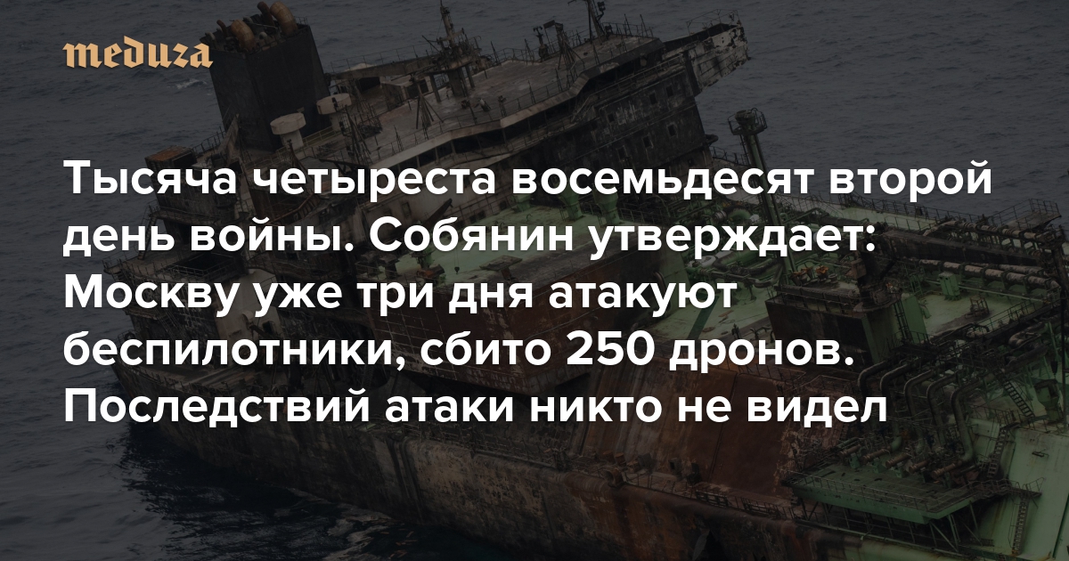 Война Тысяча четыреста восемьдесят второй день. Собянин утверждает: Москву уже три дня атакуют беспилотники, сбито 250 дронов. Последствий атаки никто не видел