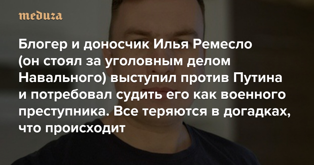 Блогер и доносчик Илья Ремесло (он стоял за уголовным делом Навального) выступил против Путина и потребовал судить его как военного преступника Все теряются в догадках, что происходит