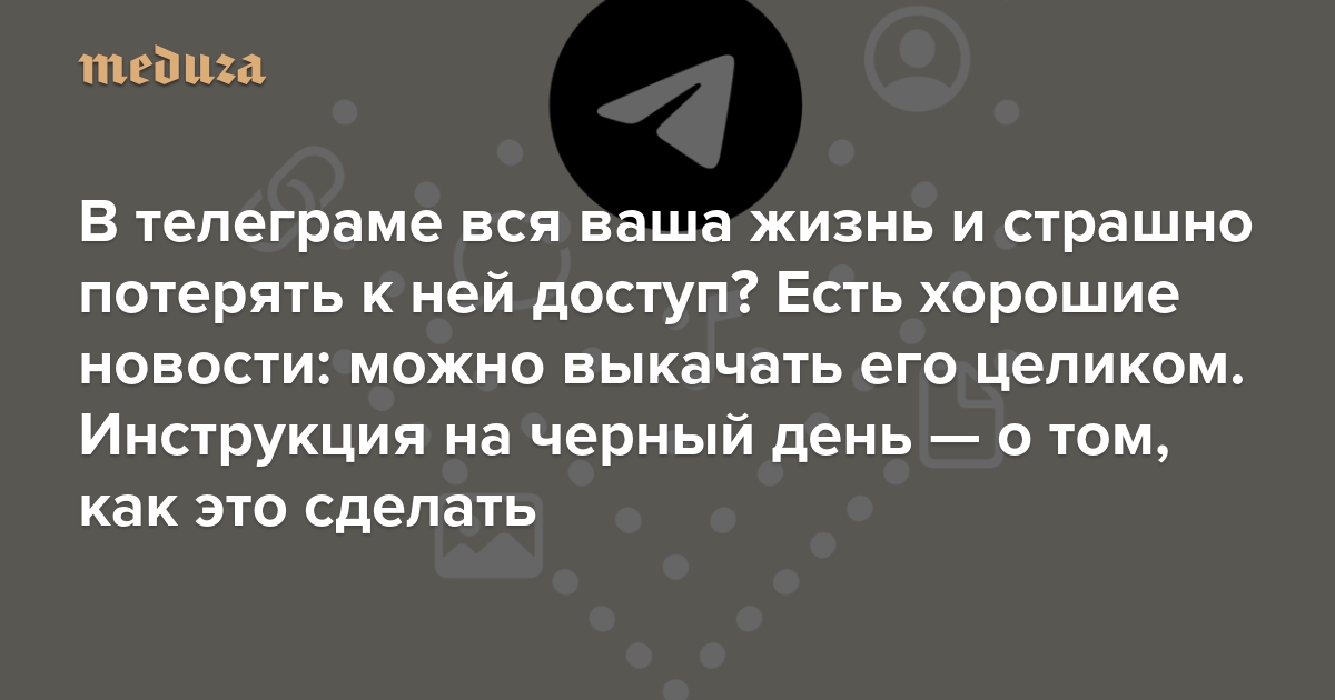 В телеграме вся ваша жизнь и страшно потерять к ней доступ? Есть хорошие новости: можно выкачать его целиком Инструкция на черный день — о том, как это сделать