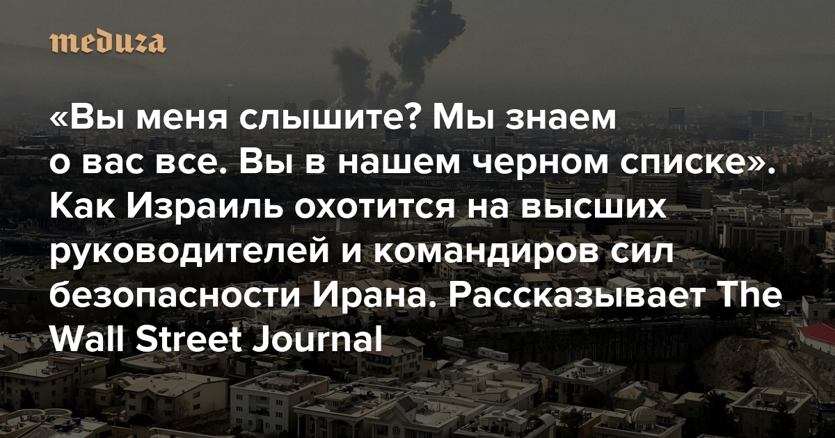 «Вы меня слышите? Мы знаем о вас все. Вы в нашем черном списке» Как Израиль охотится на высших руководителей и командиров сил безопасности Ирана. Рассказывает The Wall Street Journal