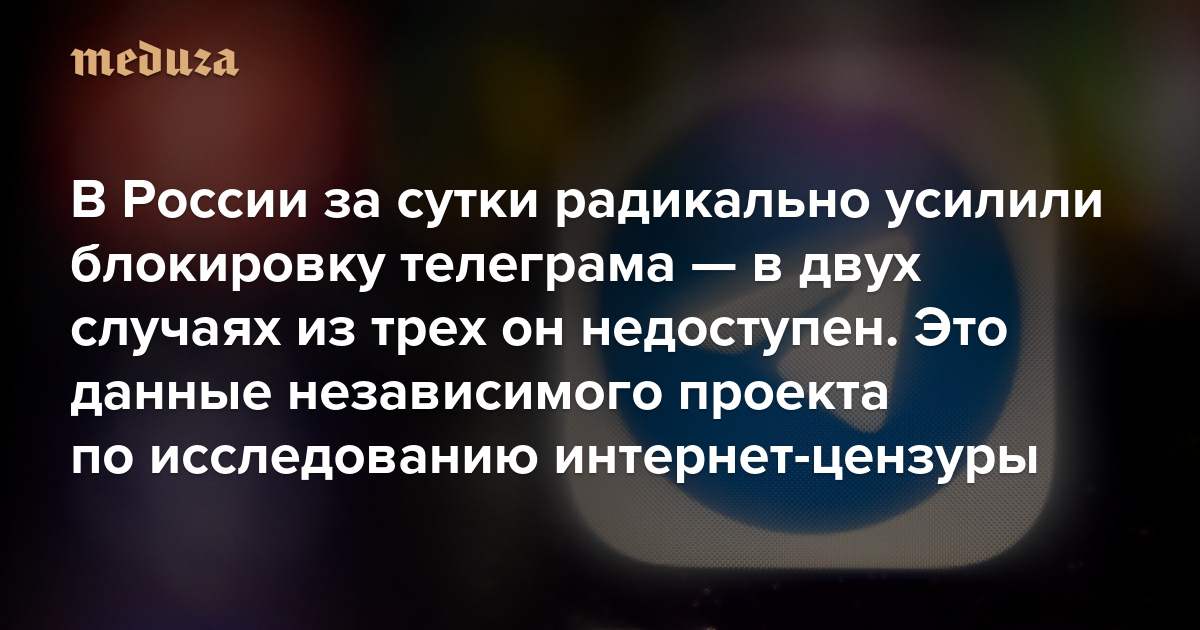 В России за сутки радикально усилили блокировку телеграма — в двух случаях из трех он недоступен Это данные независимого проекта по исследованию интернет-цензуры