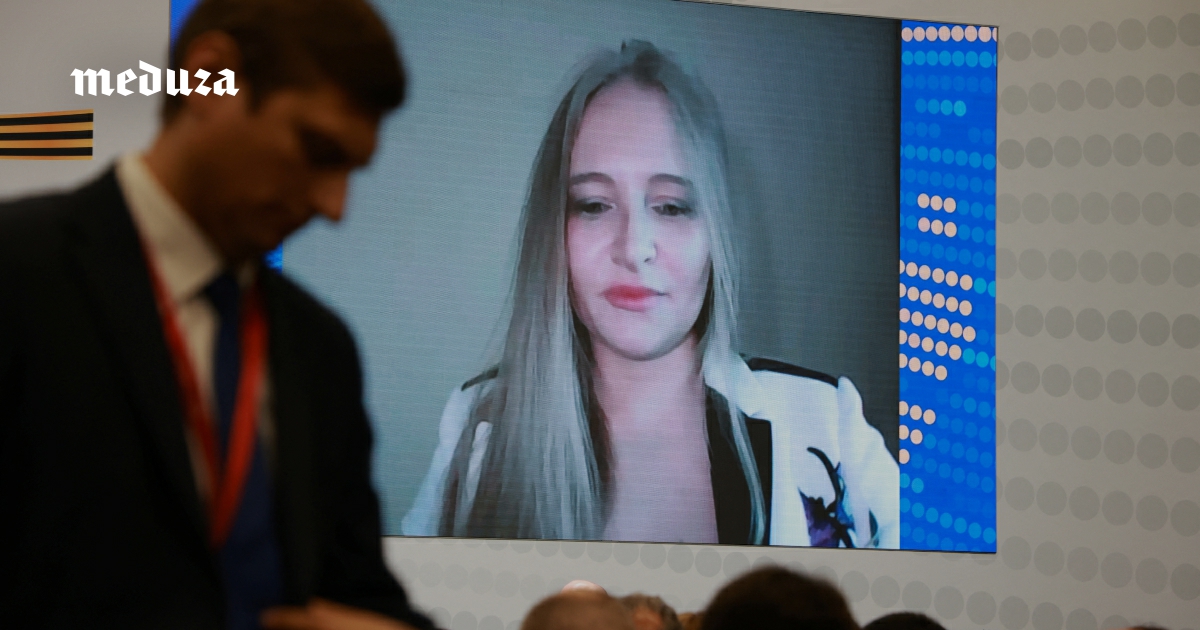 Катерина Тихонова выступает по видеосвязи на Петербургском международном экономическом форуме, 18 июня 2025 года