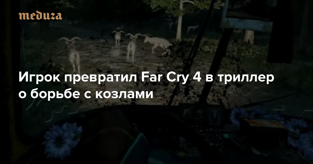 Видеоблогер Robbaz построил в Far Cry 4 уровень, населенный только козлами. Он записал остросюжетный ролик о своей борьбе с парнокопытными: на видео герой тайком проникает на базу козлов, сталкивается с их лидером, а затем с боем прорывается к морю.