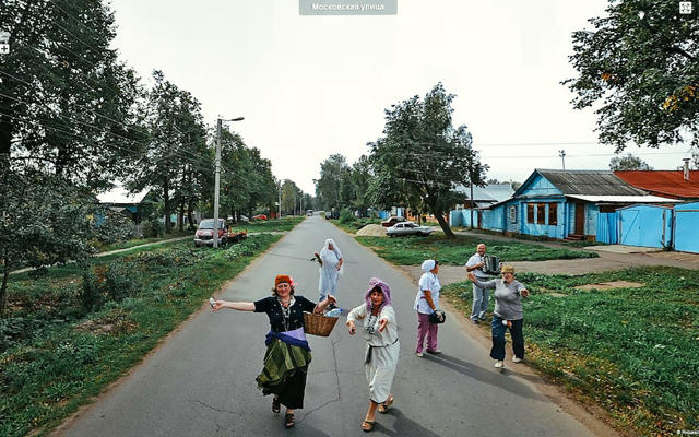 Фотограф Даниил Максюков устраивал виртуальные путешествия по российским регионам с помощью сервиса «Яндекс.Панорамы» и снимал интересные сюжеты, которые попадались на пути следования «яндексмобиля». Он отмечает, что предпочел российский сервис, потому что в нем, в отличие от Google Street View, не замыливаются лица людей и номера автомобилей, поэтому зрителям предстает полноценная картина.