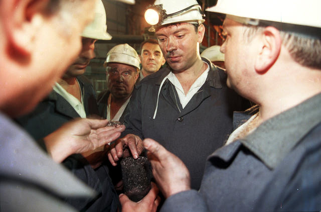 Вице-премьер правительства России Борис Немцов во время визита на шахту «Октябрьская-южная», город Шахты, Ростовская область, 22 мая 1998 года