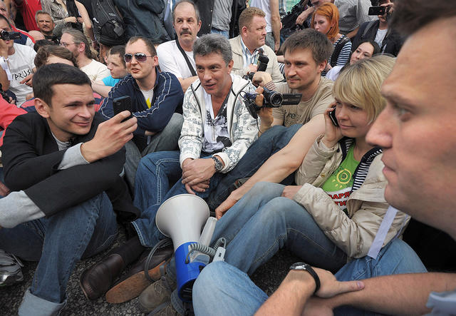 Сопредседатель движения «Солидарность» Борис Немцов на митинге оппозиции, организованном демократической «Партией народной свободы» (Парнас) на Болотной площади, 16 апреля 2011 года