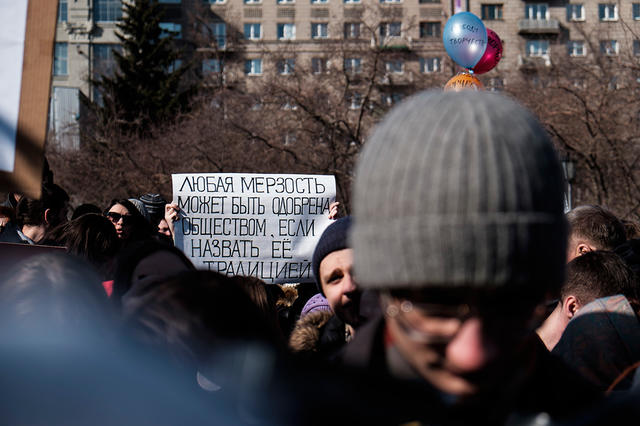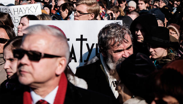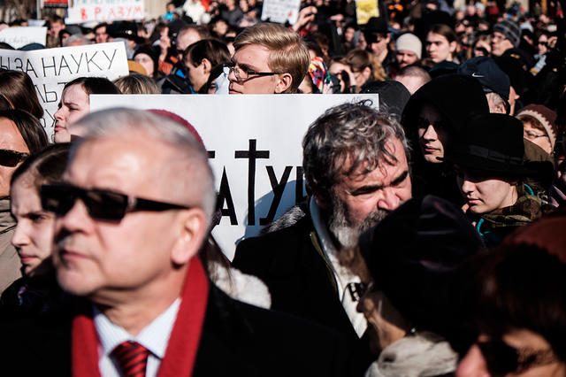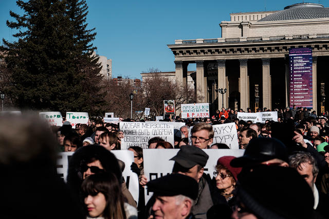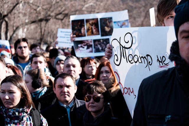 В Новосибирске в воскресенье, 5 апреля, прошел митинг в защиту свободы творчества — на Площади Ленина собрались, по разным оценкам, от трех до пяти тысяч человек. Перед ними выступили заслуженный артист России Владимир Лемешонок и протодиакон Андрей Кураев. Видеообращения к участникам митинга записали, среди прочих, режиссер Андрей Звягинцев и Борис Мездрич — бывший директор Новосибирского театра оперы и балета, уволенный в связи со скандалом вокруг постановки оперы Вагнера «Тангейзер».