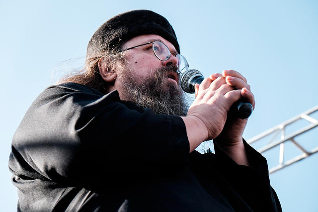 Протодиакон Андрей Кураев на митинге «За свободу творчества» в Новосибирске