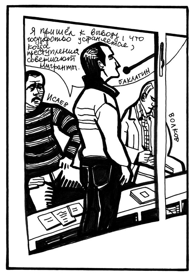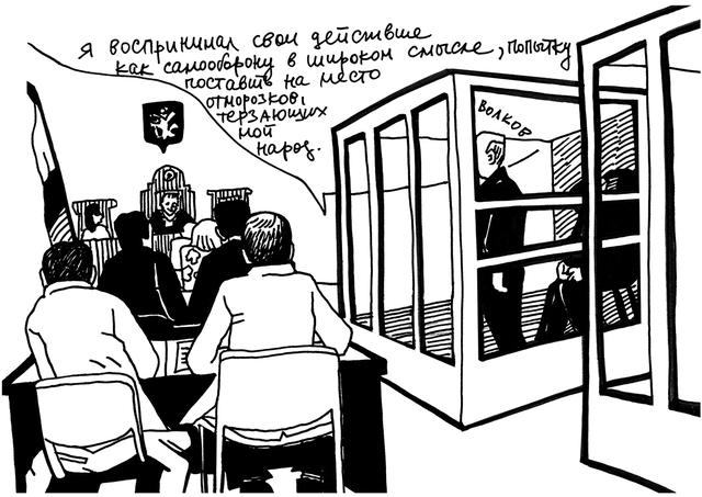 На протяжении всего процесса в суде работала художник Виктория Ломаско. «Медуза» представляет ее графический рассказ о том, как судили членов «Боевой организации русских националистов». Комментарии к рисункам подготовил специальный корреспондент «Медузы» Андрей Козенко, также следивший за процессом.