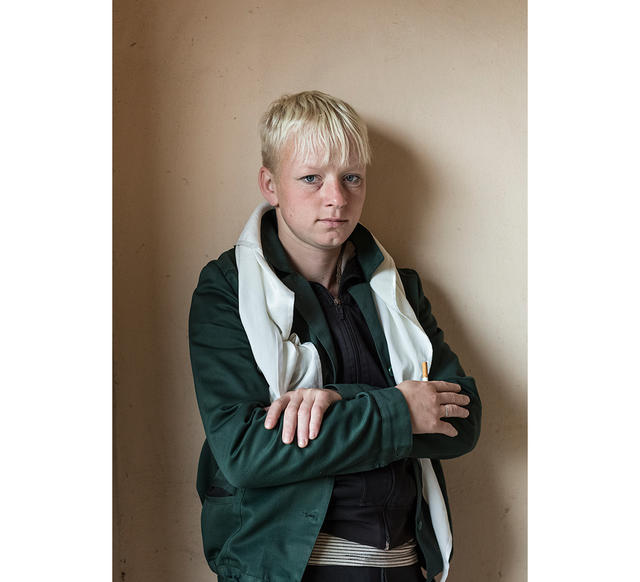 Анна, родилась в 1988-м, колония для осужденных впервые, срок — 2 года 7 месяцев. У Анны есть девятилетняя дочь. Женщина сфотографирована в коридоре швейной фабрике, где она и работает. У нее в руках образец солдатской формы. Многие осужденные получают профессию швеи в ПТУ при колонии — женщин обучают вольнонаемные сотрудники. Осужденные получают образование, чтобы иметь возможность получить УДО.
