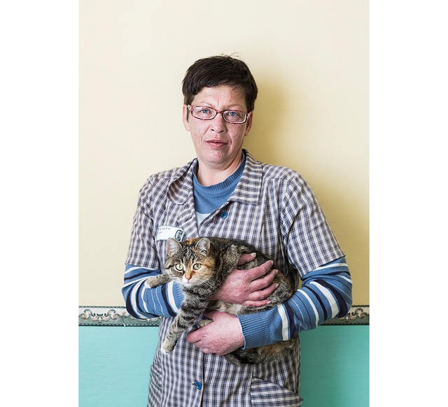 Татьяна, родилась в 1972-м, колония для неоднократно осужденных, срок — 5 лет. Дома ее ждут родители и сестра. Сфотографирована с отрядной кошкой Маней, к которой очень привязалась.