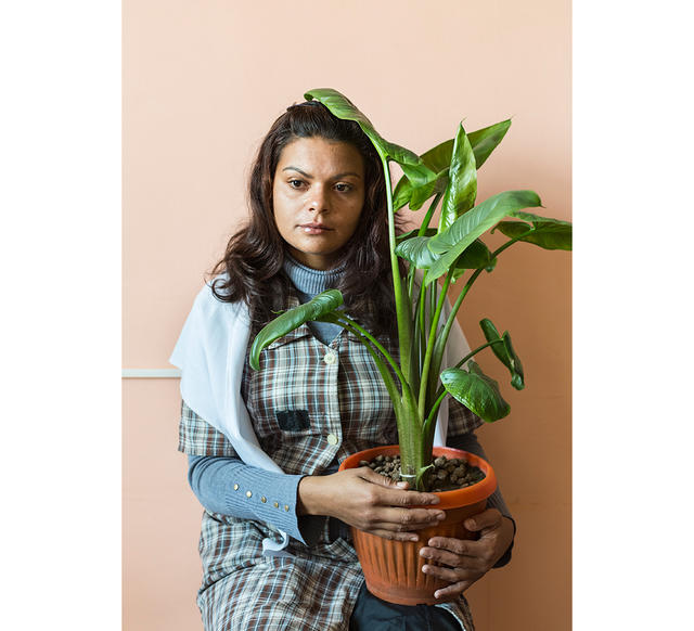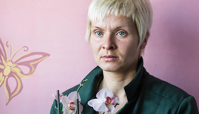 Елена, родилась в 1982-м, колония для осужденных впервые, срок — 7 лет. Ухаживает за своей орхидеей, сфотографирована в спальном помещении, самостоятельно декорированном осужденными. На свободе Елену ждут родители.